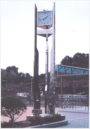 시계탑 조형물 레이저 가공 제작 및 설치시공 사진입니다.